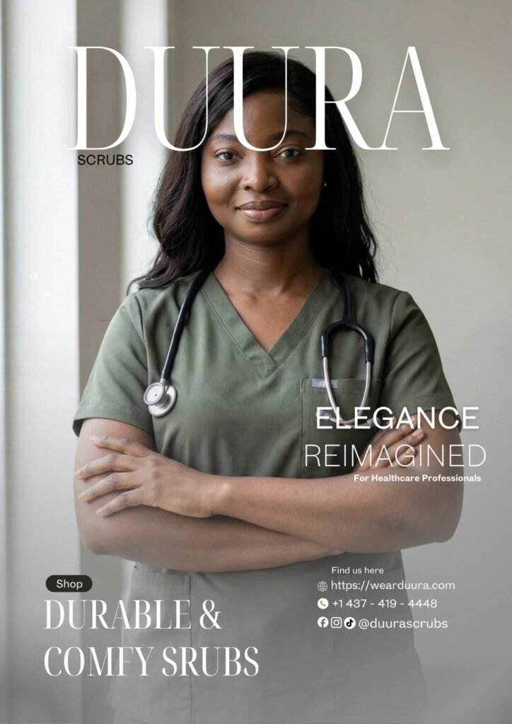 Esther Ojo, a Canada-based registered nurse, cultural entrepreneur, and community wellness advocate, has officially launched DUURA, a premium medical and professional apparel brand designed for individuals who spend long hours on their feet, working under pressure and constantly in motion.