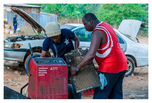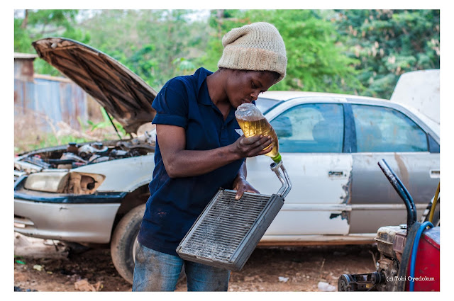 “I have always been fascinated about male dominated jobs, while growing up, I had an uncle who was a Mechanical engineer, his specialty was in generator repairs; I remember that I use to follow him to his workshop back then and that was how I developed interest for this type of Job. The yearn and urge to do something masculine surfaced when i arrived at Abuja, so I decided to start learning how to repair automobile ACs. I love this Job because it is unique; I am so glad that my dream is coming through”.